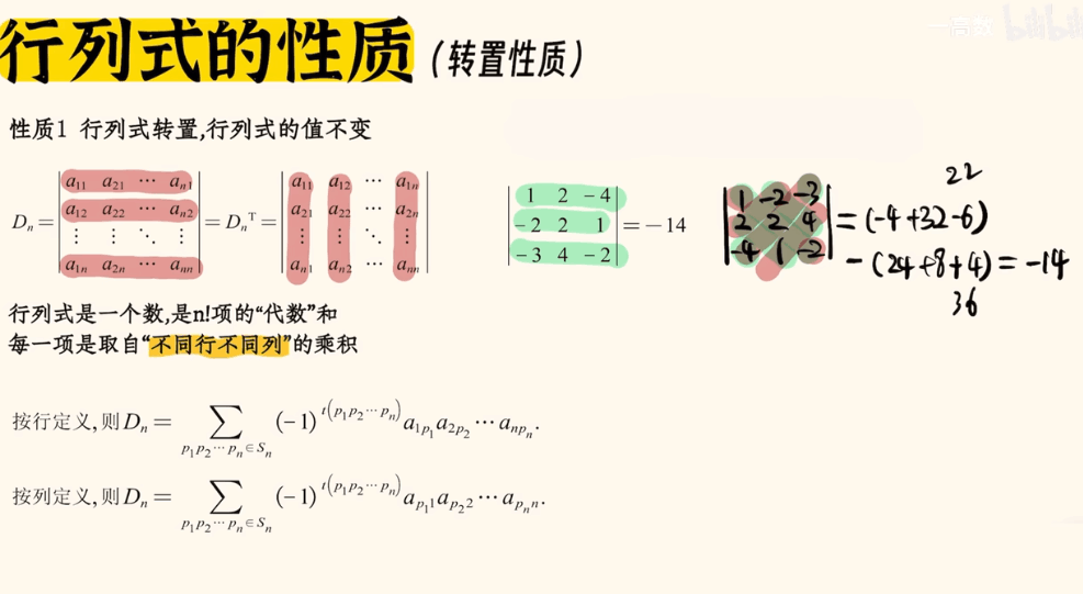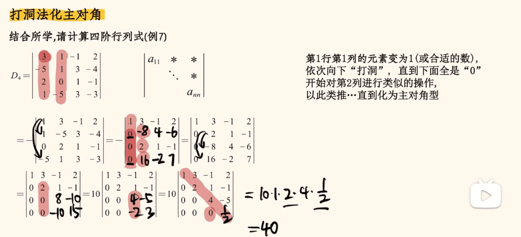 上三角矩阵的行列式等于正对角线各元素的乘积