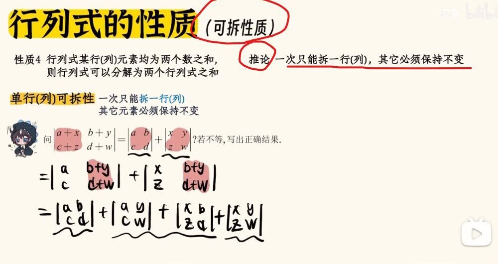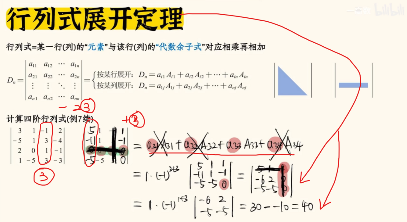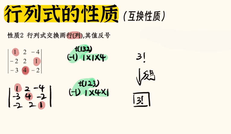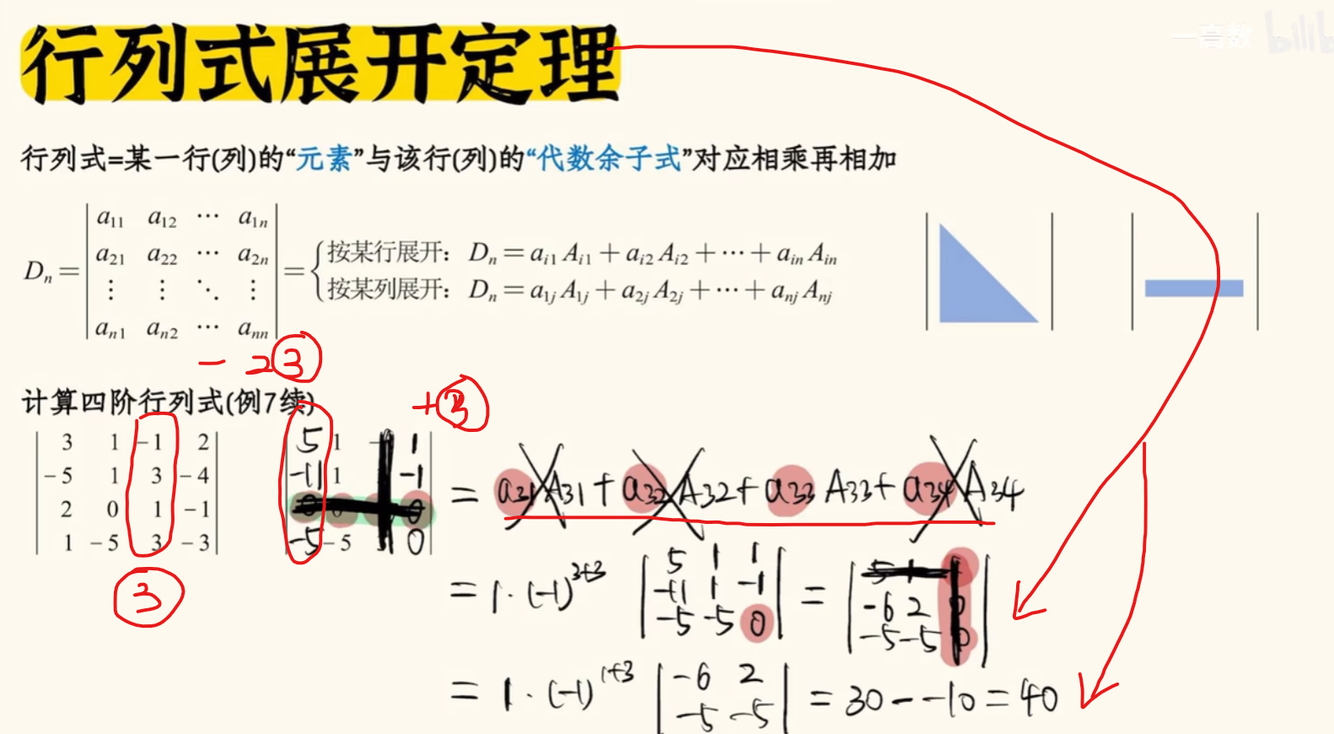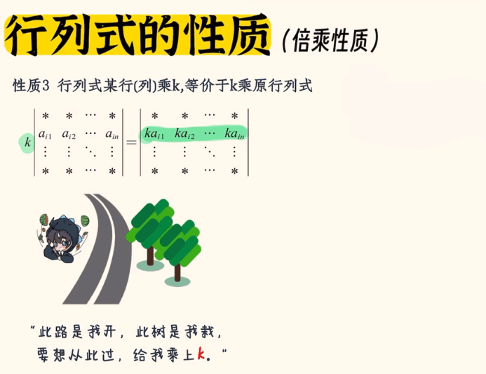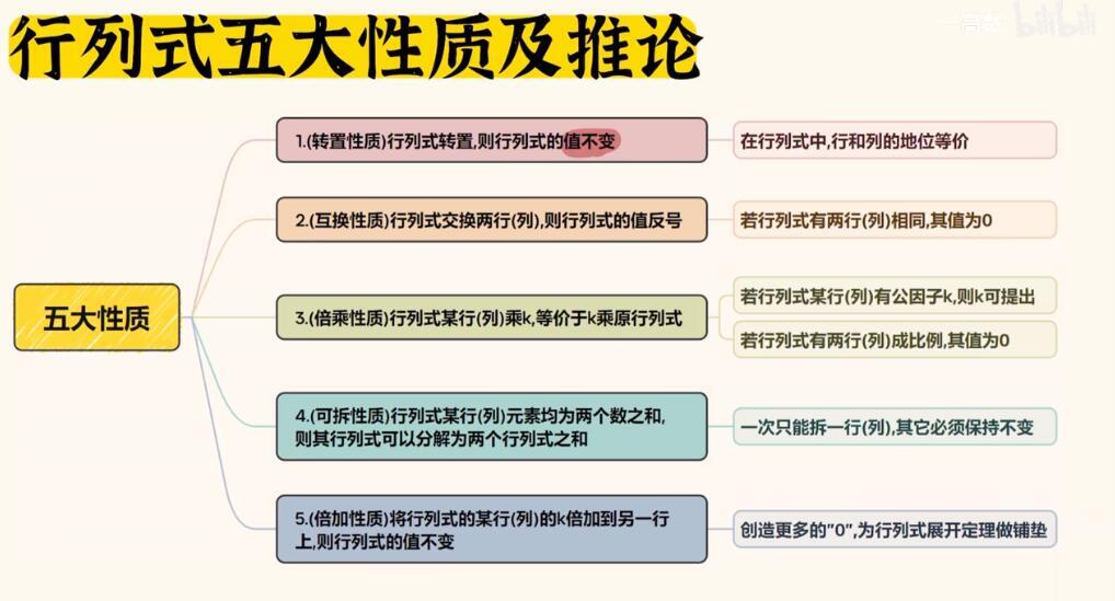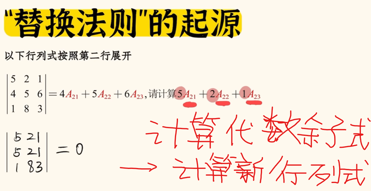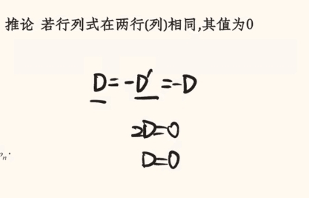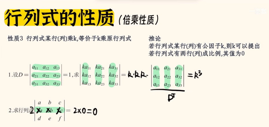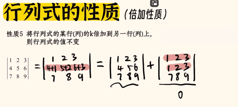 行列式性质补充:行列式中有两行对应元素成比例,则行列式等于零