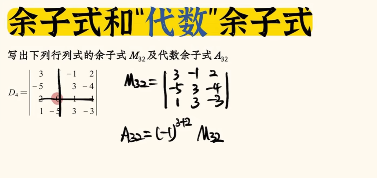 余子式:处出选定元素所在的行与列,之后产生的新行列式