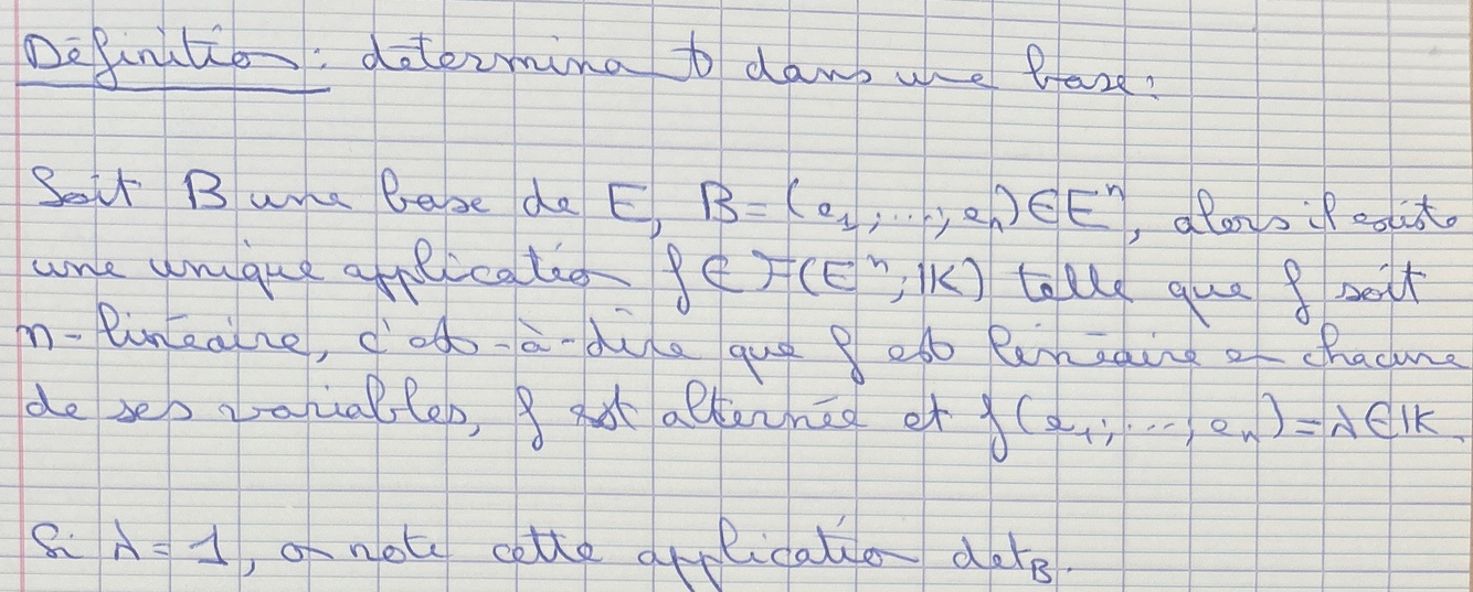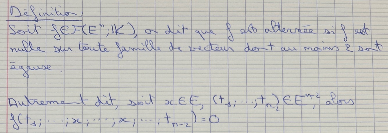 C’est une fonction de E^n dans K qui est linéaire en chacune de ses n variables si on fixe les n-1 autres