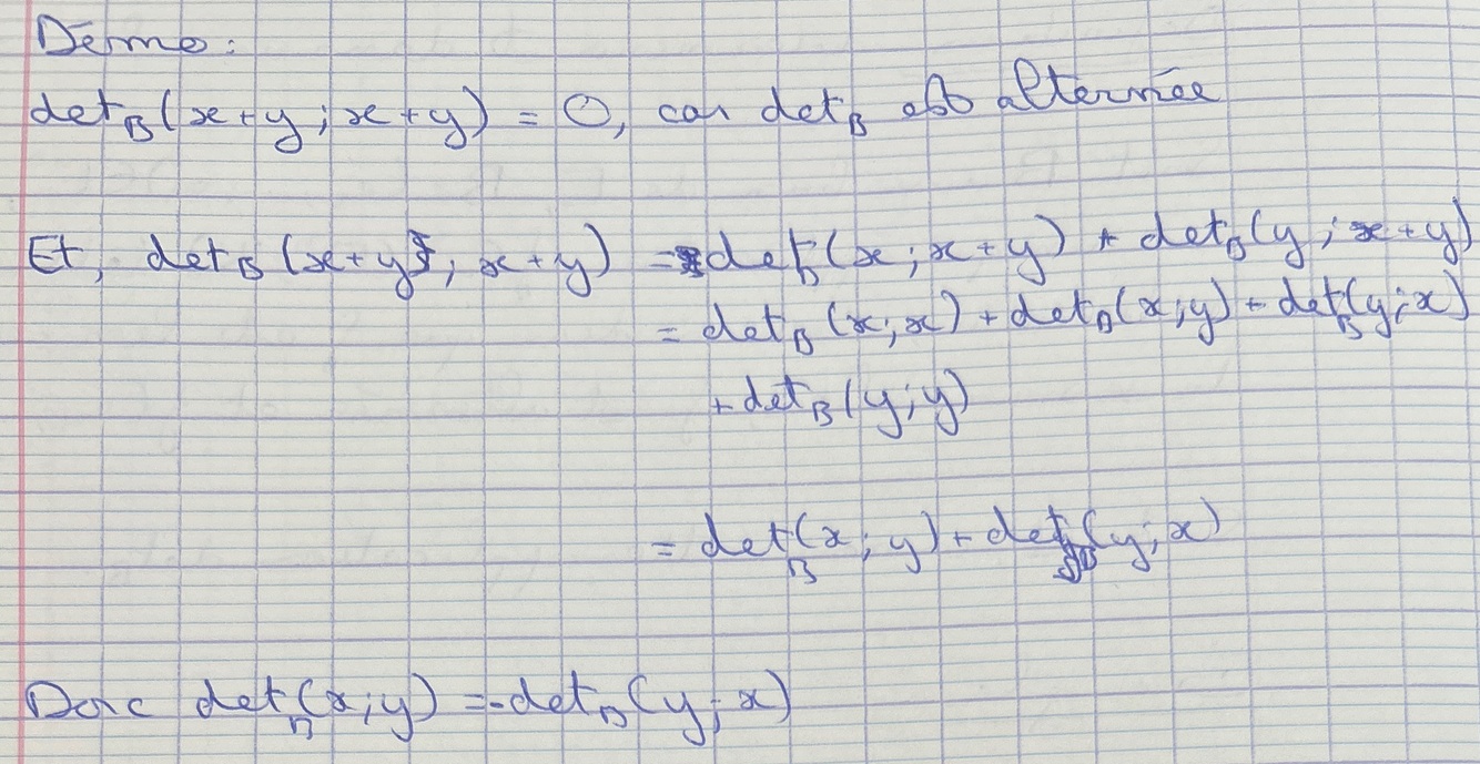 Soit (x,y)€E², que vaut detB(y,x) ?