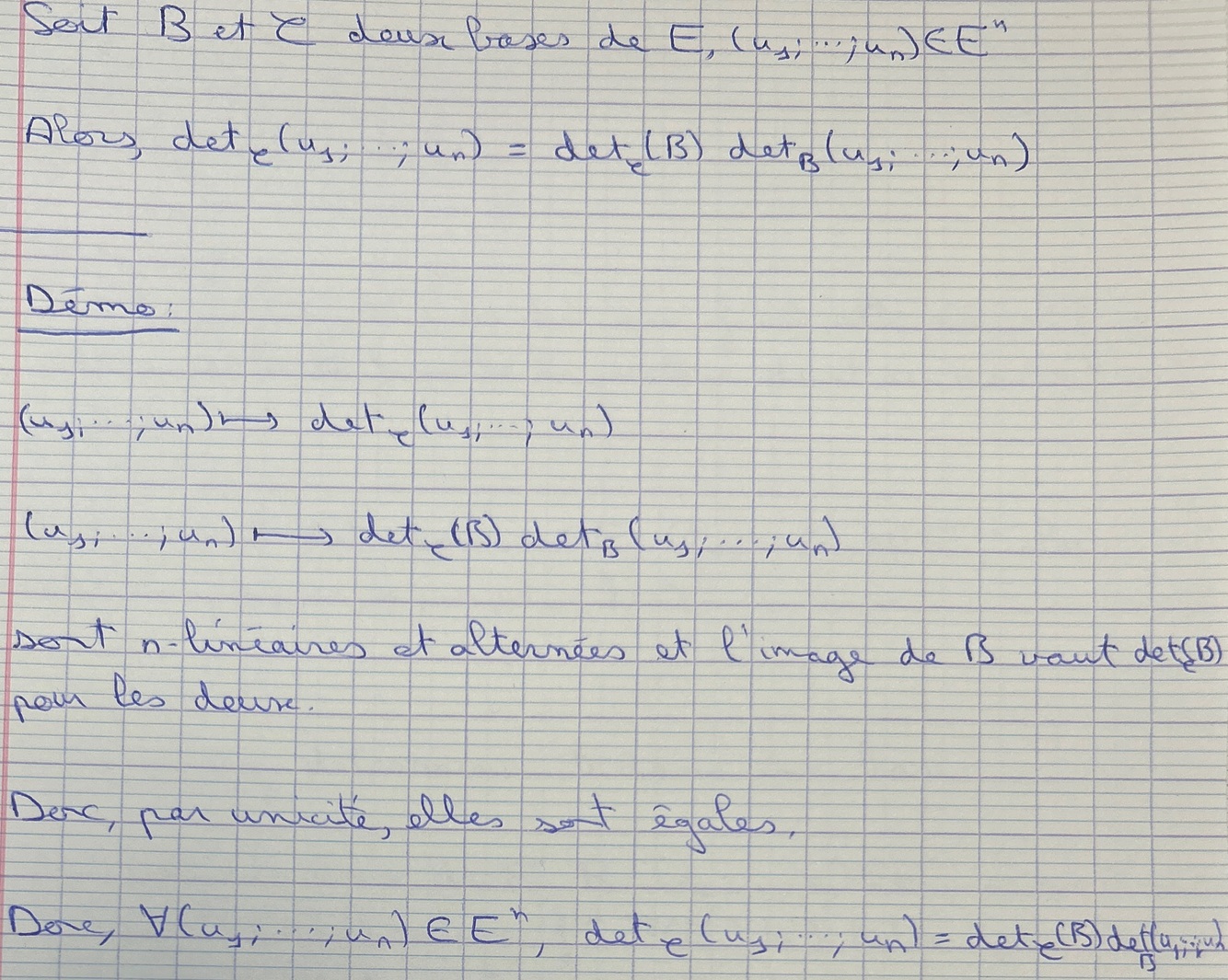 Donner la formule de passage des déterminants pour une famille de vecteurs