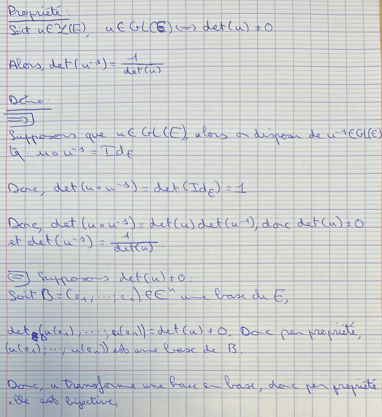 Quel est le lien entre inversibilité d’une application linéaire et son déterminant ?