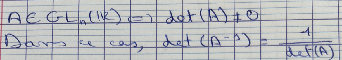Comment lier déterminant et inversibilité d’une matrice, donner dans ce cas det(A-1)