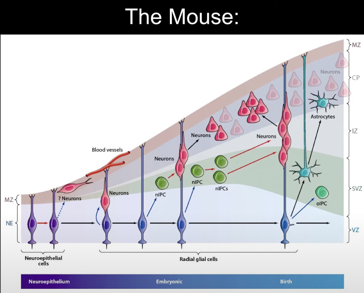 Early human cortical development is highly similar to rodents; in later stages, however, the OSVZ emerges as a separate zone of proliferation