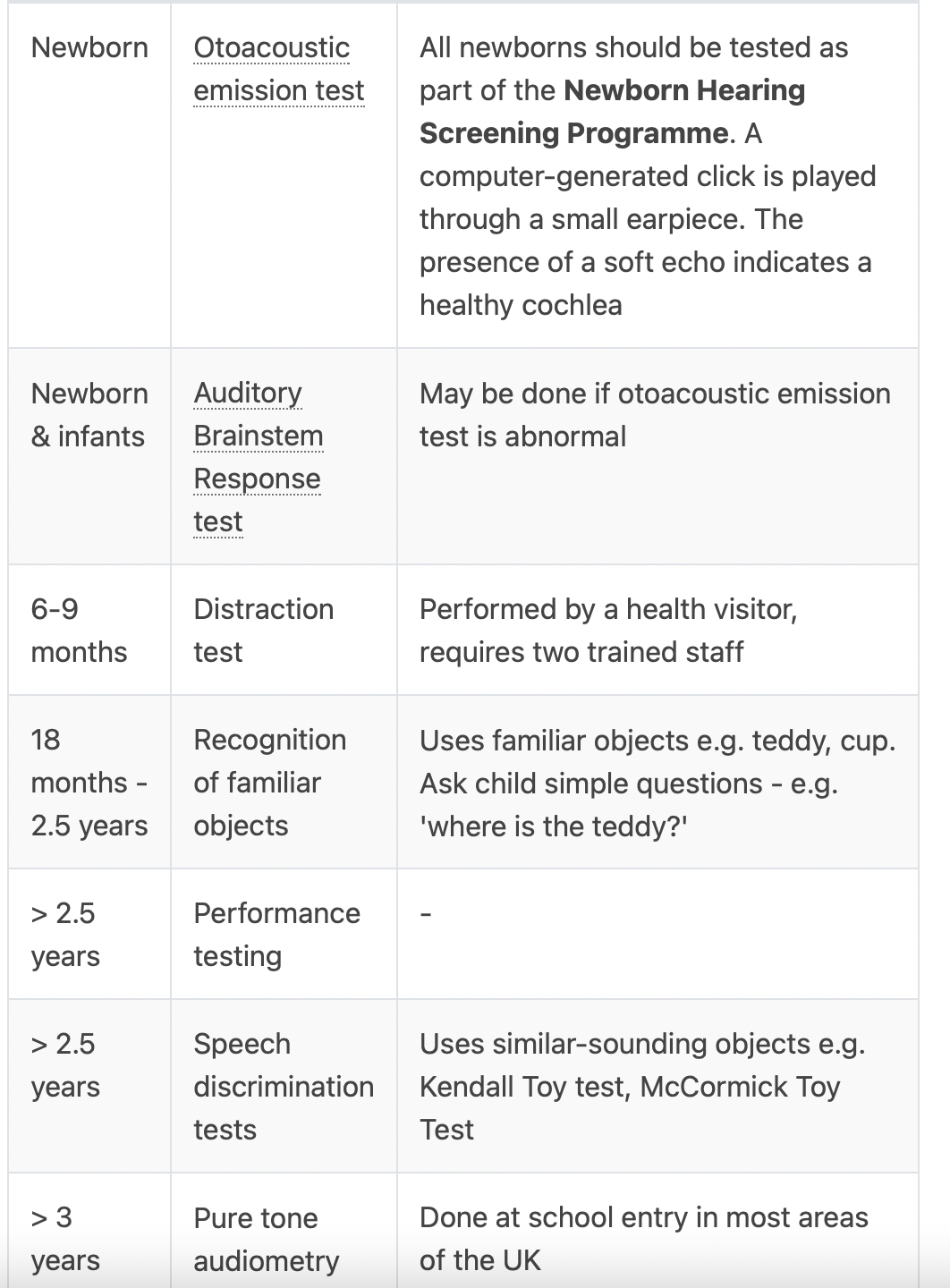As well as the above test there is a questionnaire for parents in the Personal Child Health Records - ‘Can your baby hear you?’
