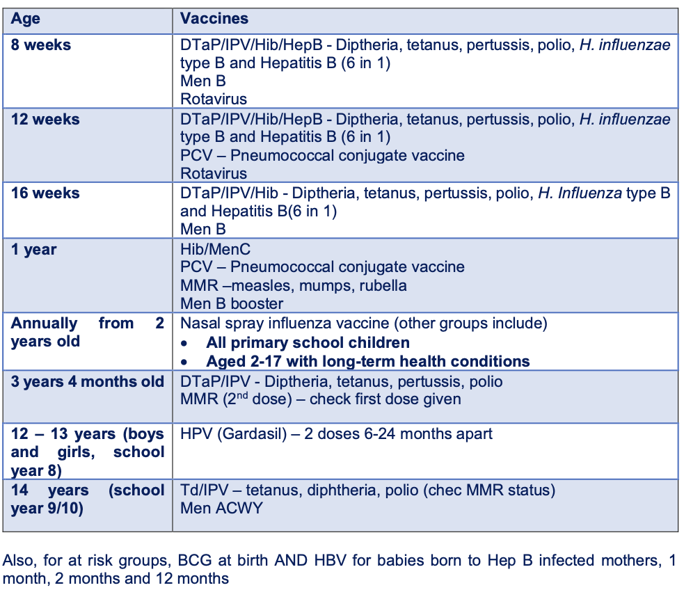 Immunisation schedule