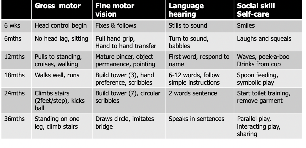 Developmental milestones summary
