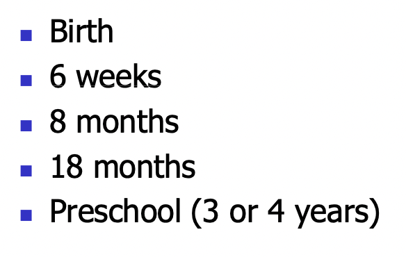 Routine developmental screening timetable