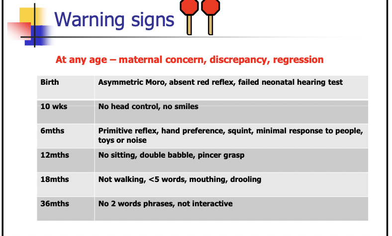 Developmental warning signs
