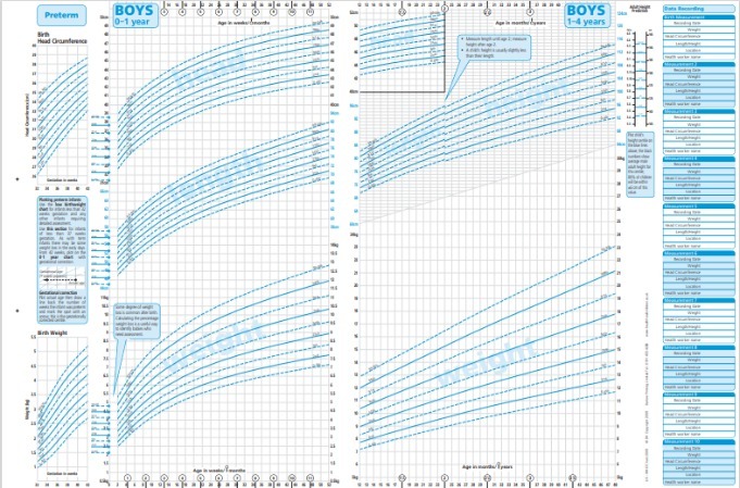- one or more centile spaces if birthweight was below the 9th centile