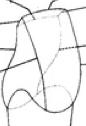 Name the depression outlined by the colored lines, and name the protrusion circled in green