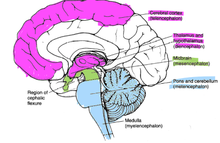 including Telencephalon or cerebral cortex and diencephalon including the thalamus and hypothalamus
