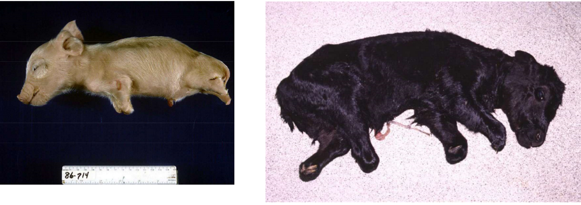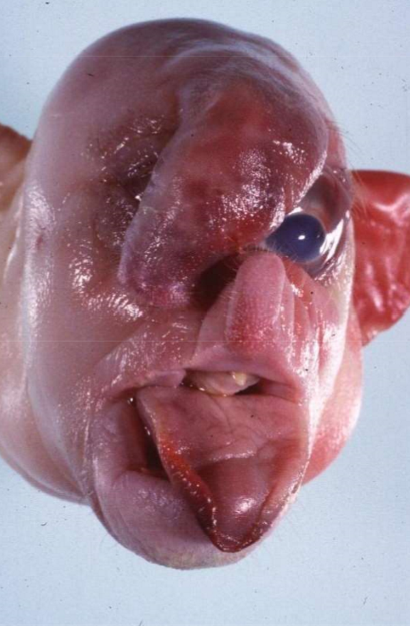 Features vary widely from microencephaly, hydrocephalus, facial anomalies, and clefts, cyclopia, single upper incisor