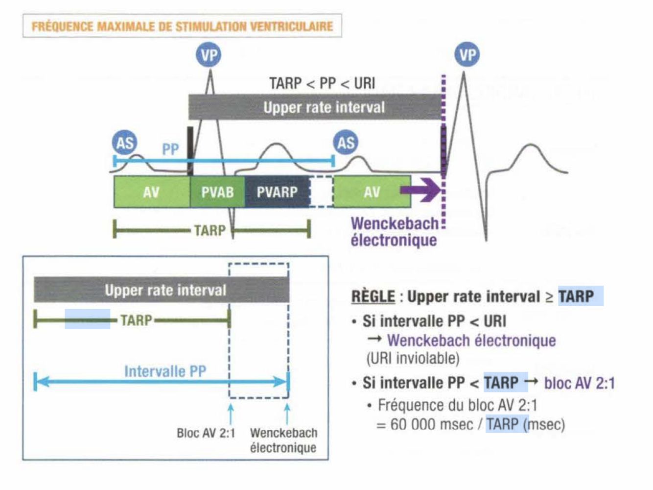 Lorsque A-sense rapide, augmentation du délai AV pour atteinte upper tracking rate (au lieu de tomber en 2:1)