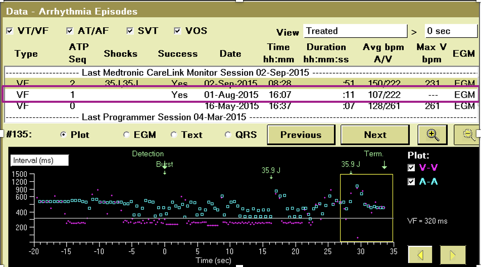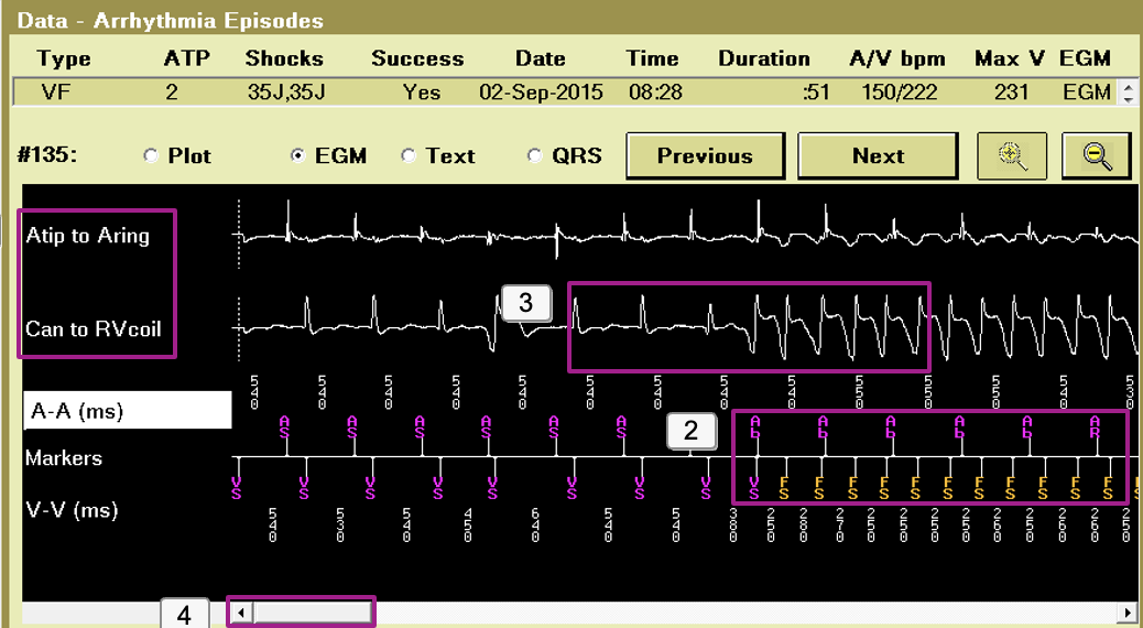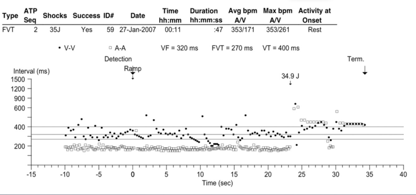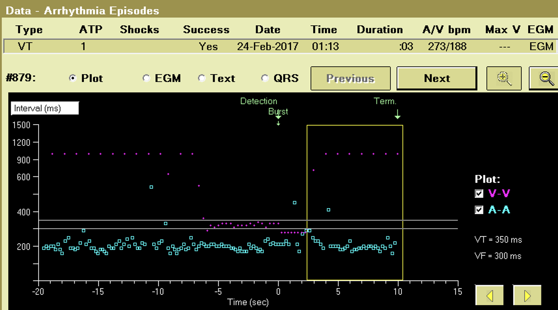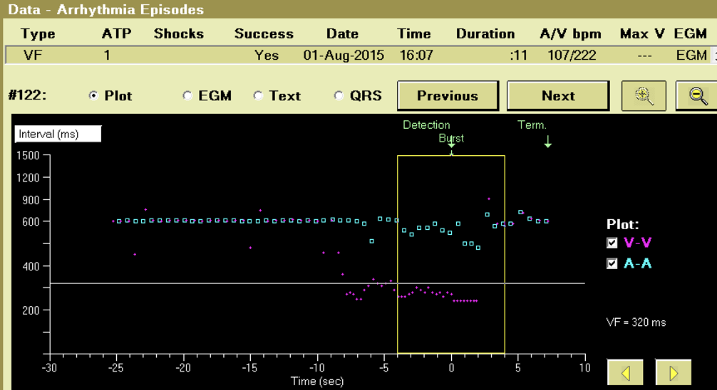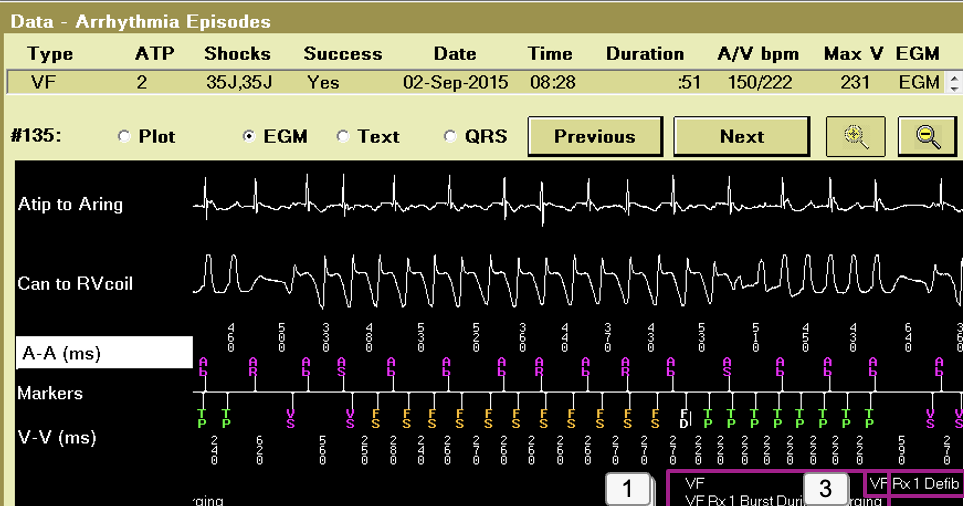 VT -> 1 failed shock -> 1 successful shock (type 2 break ) -> 1 more shock after this due to redetection