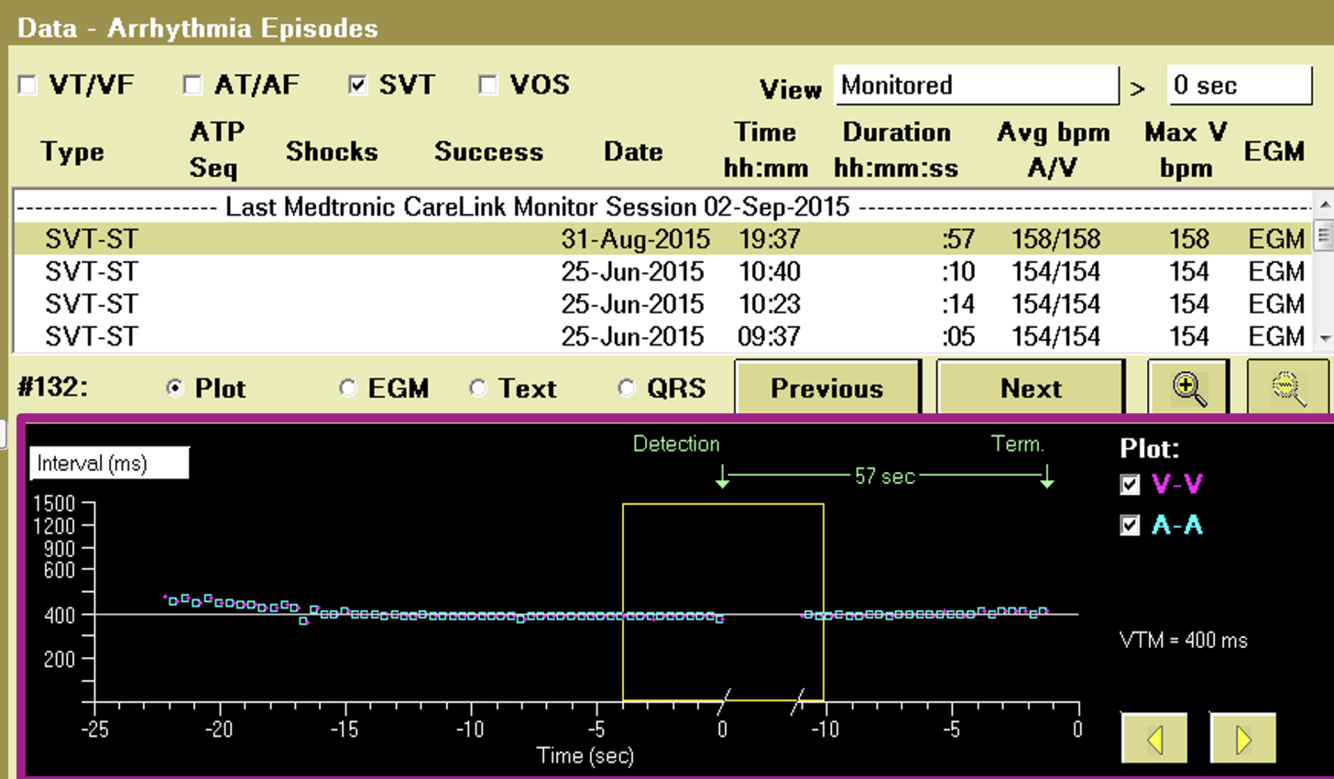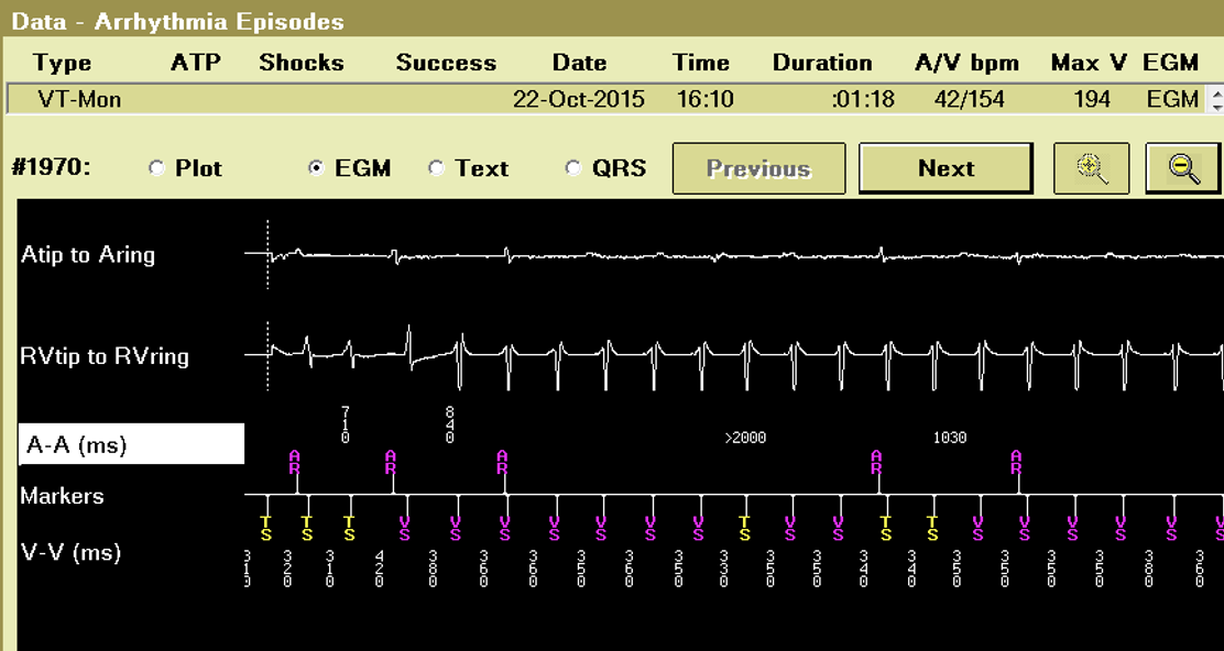 Tracking Atrial Tachycardia (Plan: VVIR, Program Mode switch)
