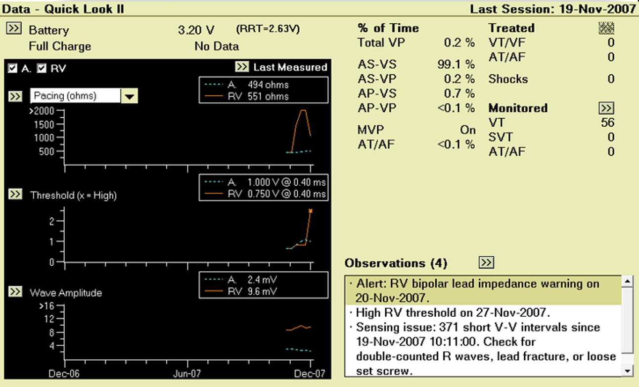 Oversensing noise: Plan: Look at impedance, CXR -> Lead revision