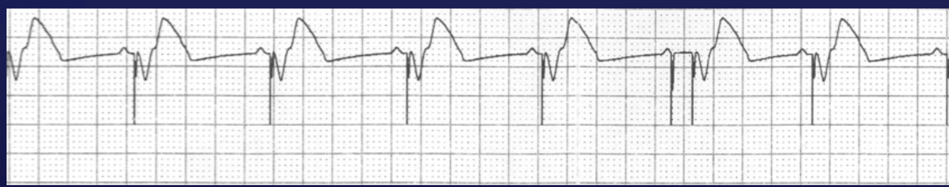 T wave oversensing (Train track sign), Plan: Decrease ventricular sensing, extend post ventricular blanking, Lead revision)