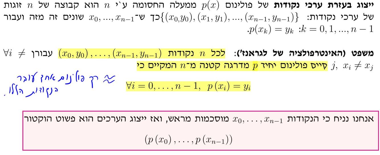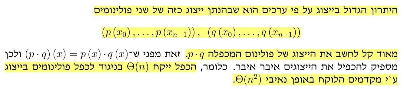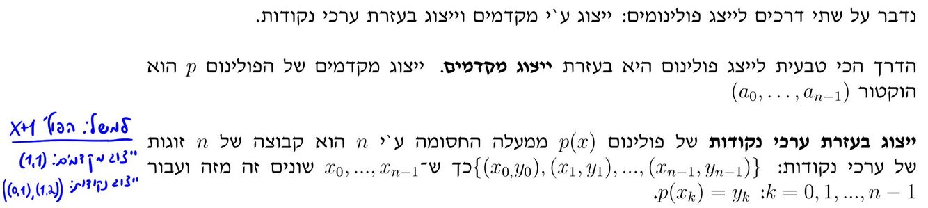 ניתן לייצג פולינום בעזרת ייצוג מקדמים ובעזרת ערכי נקודות.