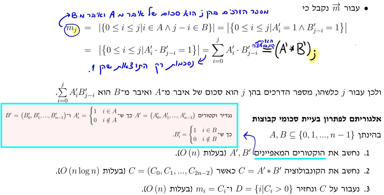 איך נבטא את מספר הדרכים עבורן j הוא סכום של איבר מA ואיבר מB?