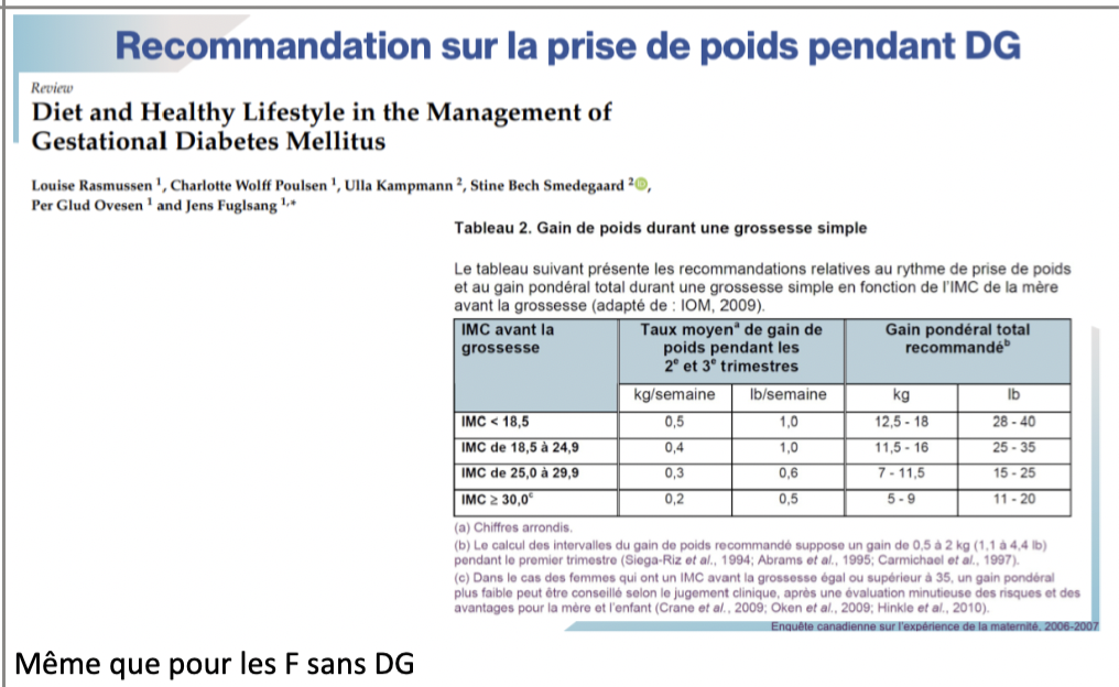 - DG : les adaptations métaboliques normales à la G ne se produisent pas de manière adéquate dans toutes les G, entraînant un DG.