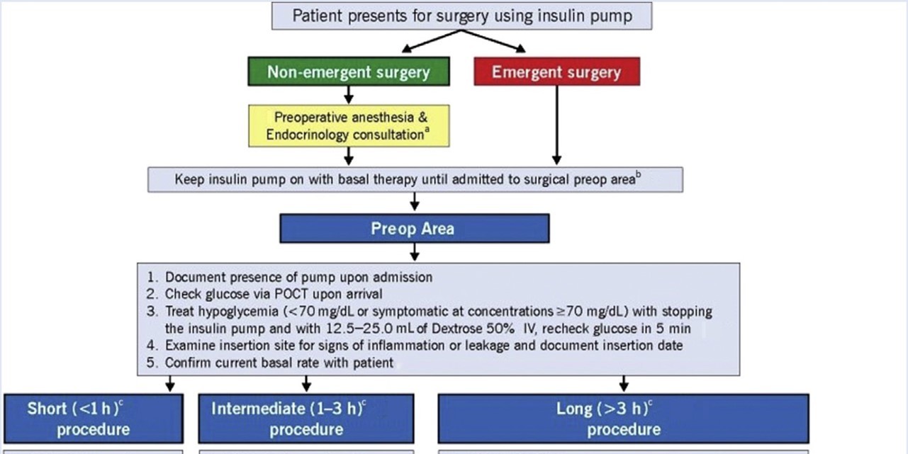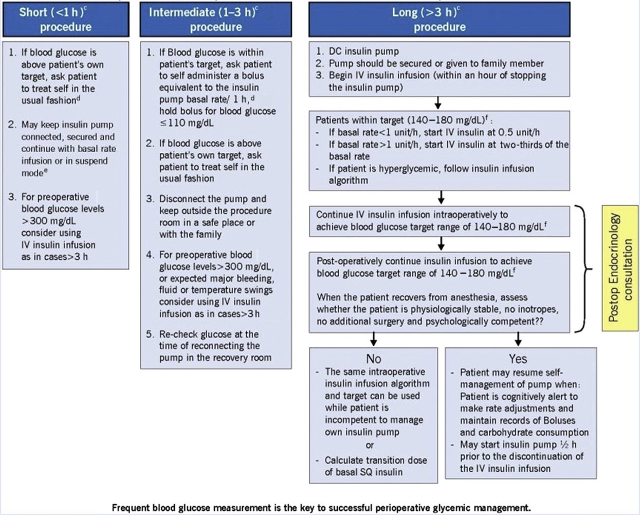 Guidelines for BG managmeent of pt with insulin pump? What is target BG if pt on insulin gtt during procedure?