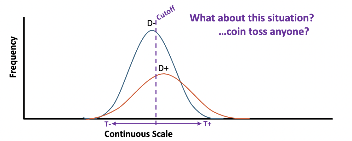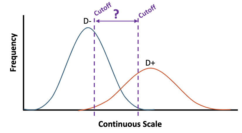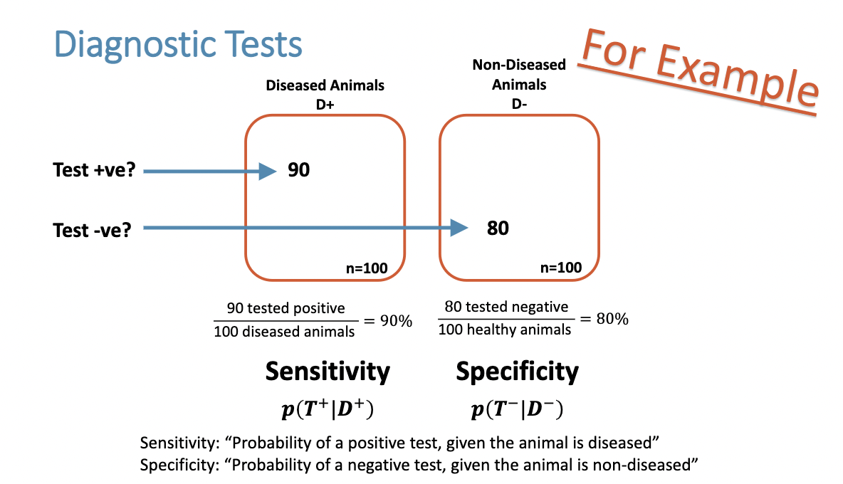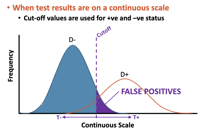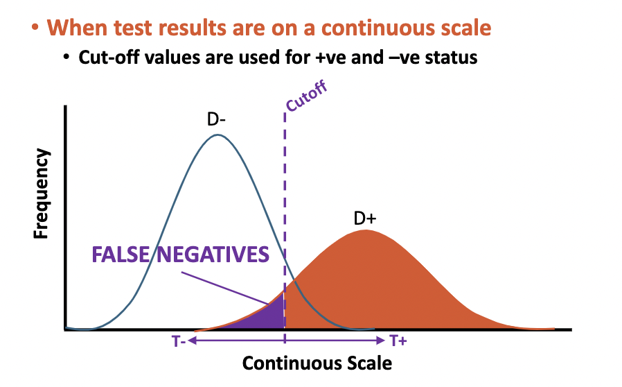 - Cut point = anything below/above this value is considered diseased/healthy. Assumption here is that there is a distribution of values for a diseased set of animals.