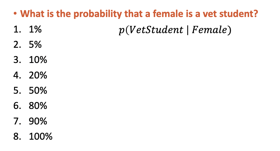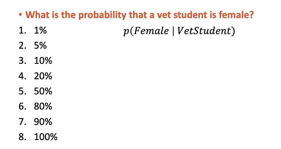 In the U.S, look at all the women in the U.S. and see how many are vet students. A few thousand out of 400 million total people in U.S., half of which are female