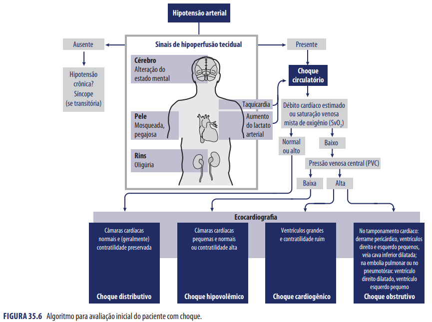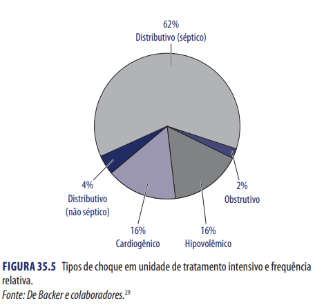 O choque séptico, uma forma de choque distributivo, é o tipo de choque mais comum nos pacientes de UTI, seguido pelo cardiogênico, hipovolêmico e obstrutivo