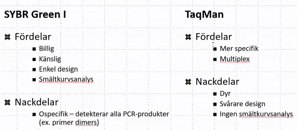 Vad skillnaden på Taqman och SYBR Green 1 gällande diagnosticering av ex hepatit?