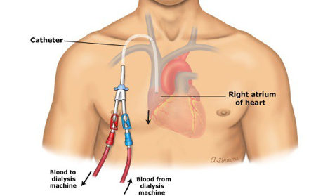 anti coagulation (usually heparin) to prevent thrombosis in the blood circuit