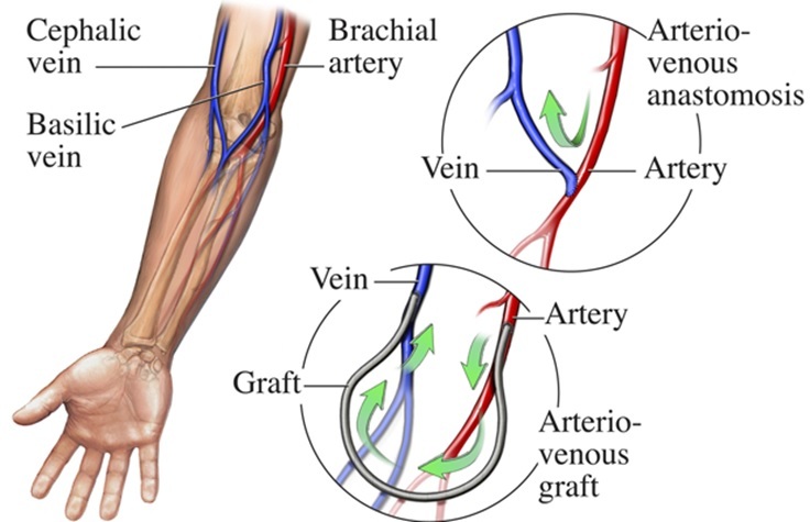 Artery and vein are surgically connected.