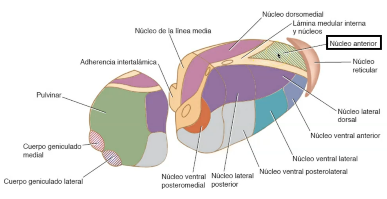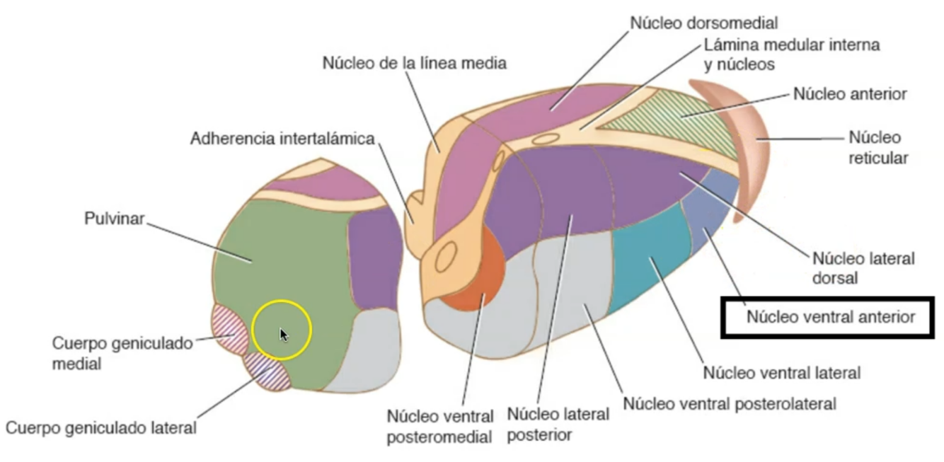 Forma parte del circuito de los ganglios (núcleos) basales y cerebelo