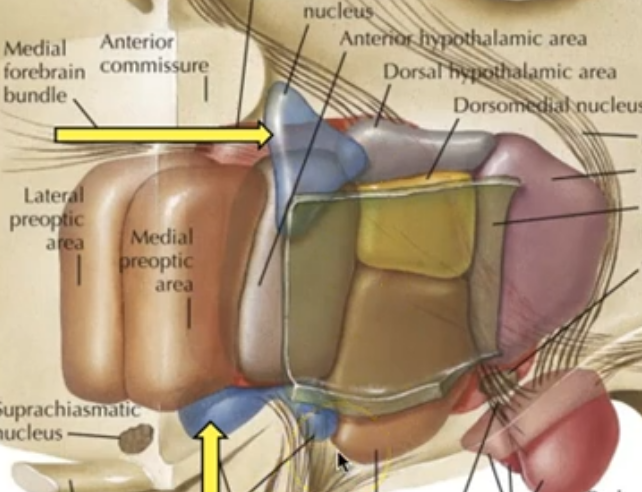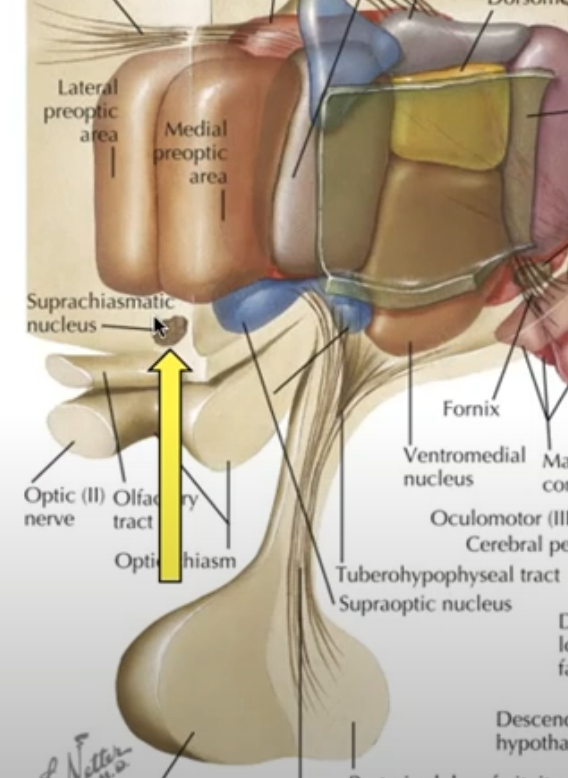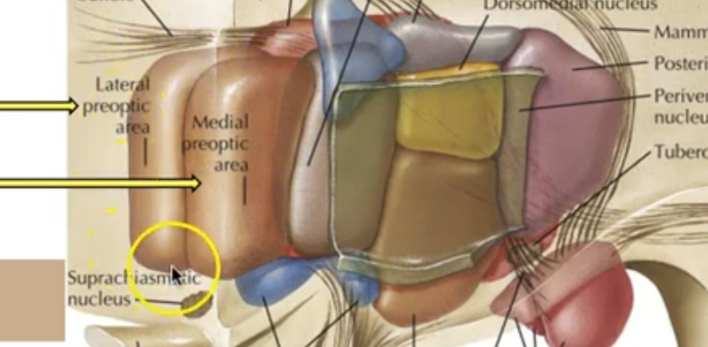Qué hace el núcleo óptico y paraventricular del hipotálamo?