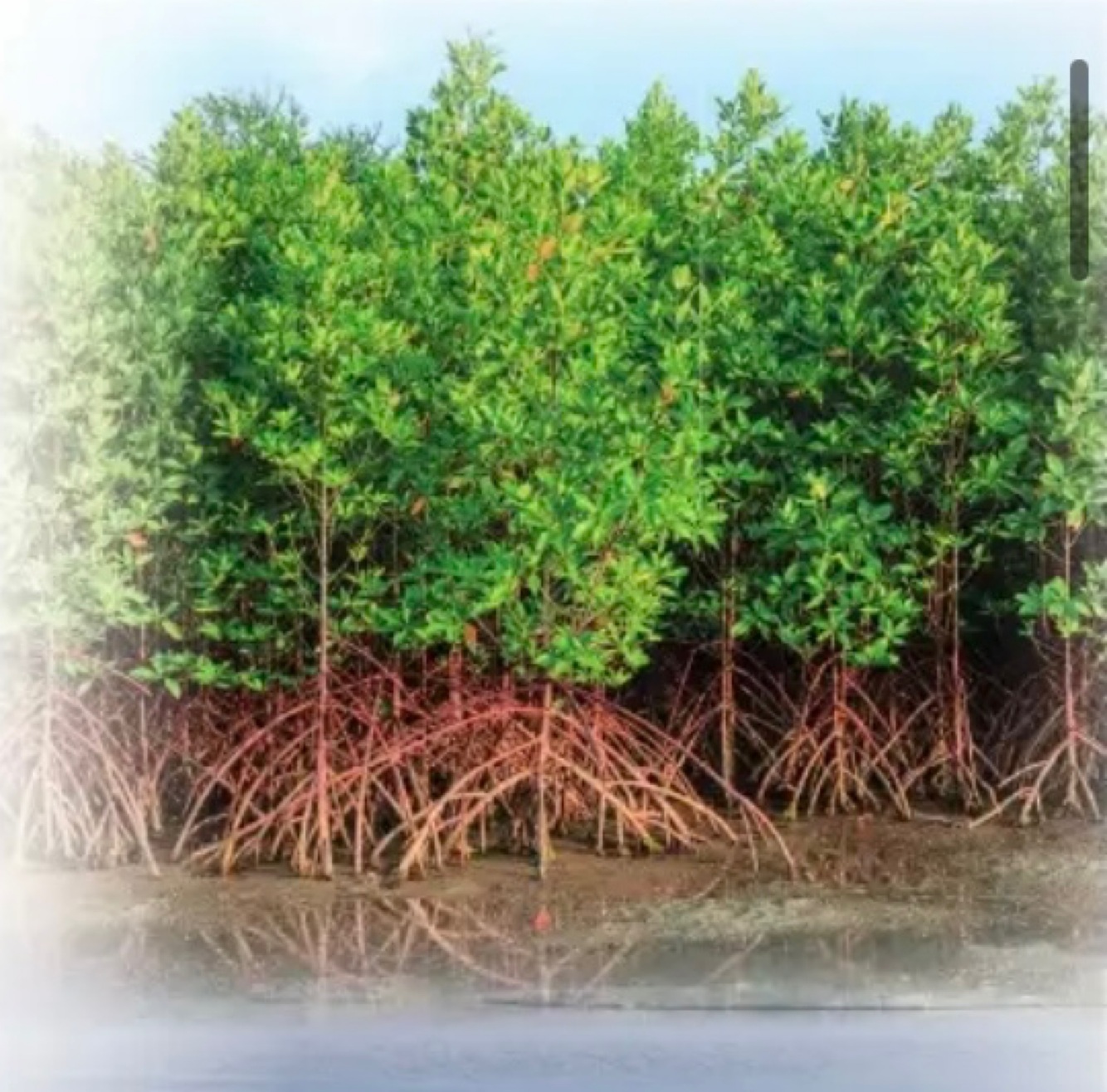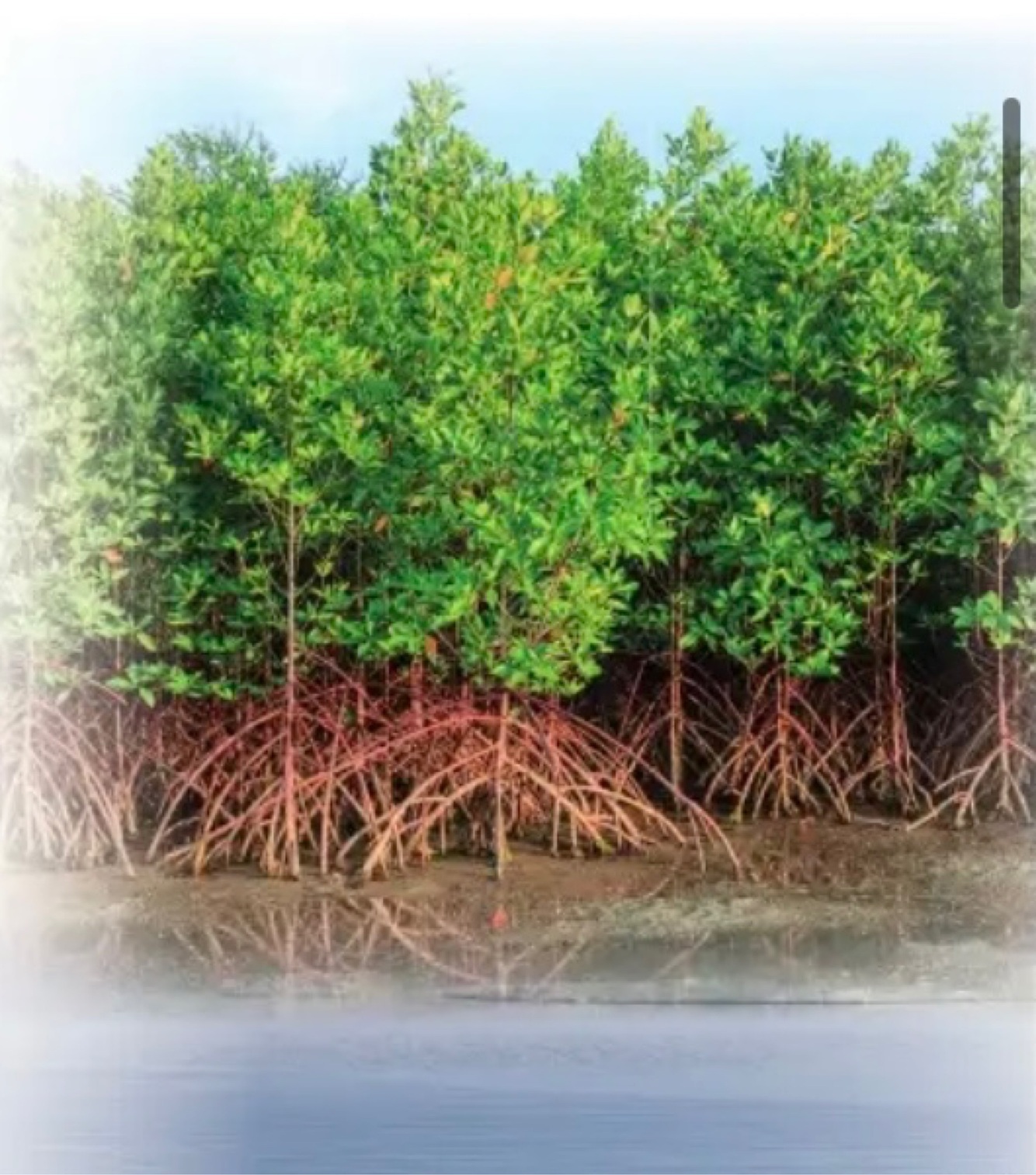 Mangroves are trees that grow with their roots in sea water, forming forests along tropical coastlines.
