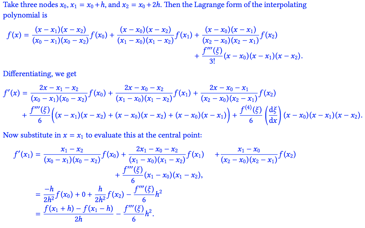 What is another way to write the central difference in the following?