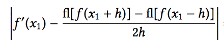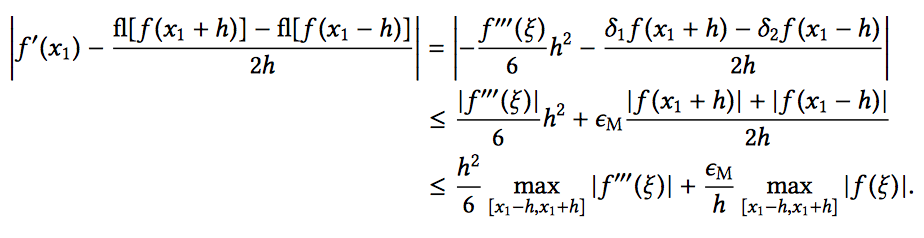 Suppse for th central difference methof we have the following rounded versions of f(x1 ± h), show what the upper bound of the followinf is.