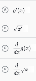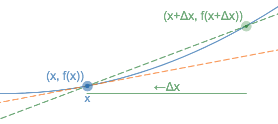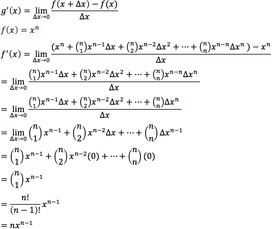 g’(x) = limΔx→0 f(x + Δx) − f(x)