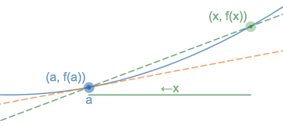 (Which is to say that you can find the slope of a tangent line that intersects g(x) at x = a)