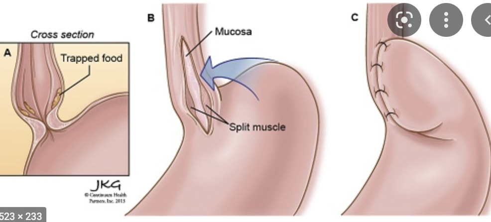 A continuous myotomy performed for 6 cm on the oesophagus & 3 cm onto the stomach