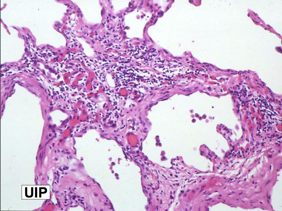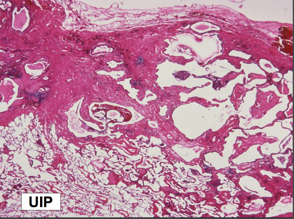 *NOTE: Although IPF is characterized pathologically by the presence of fibrosis in a UIP pattern, this UIP pattern can also be seen in other nonidiopathic conditions. IPF by definition is idiopathic; if UIP is observed, a clinical diagnosis of IPF is only made after excluding other known causes of a UIP pattern!