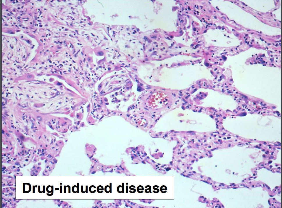 Some drugs produce various forms of interstitial lung disease, particularly antineoplastic drugs.