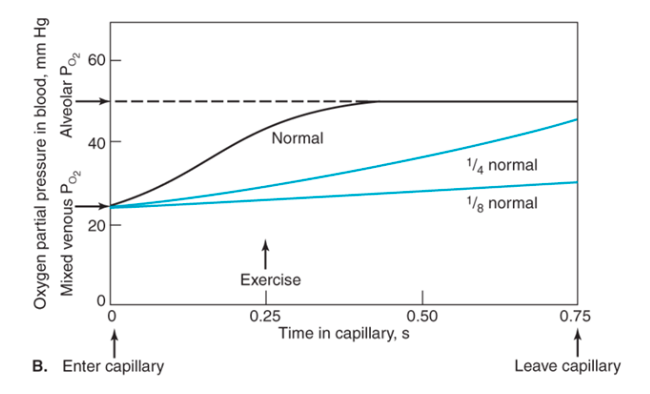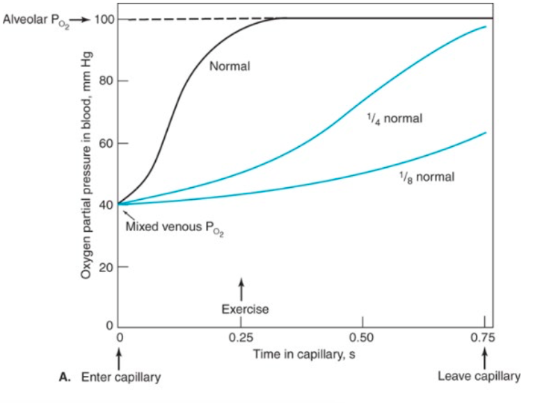 If diffusion is even 1/4 normal, the blood won’t be fully oxygenated by the time it leaves the alveolar capillaries.