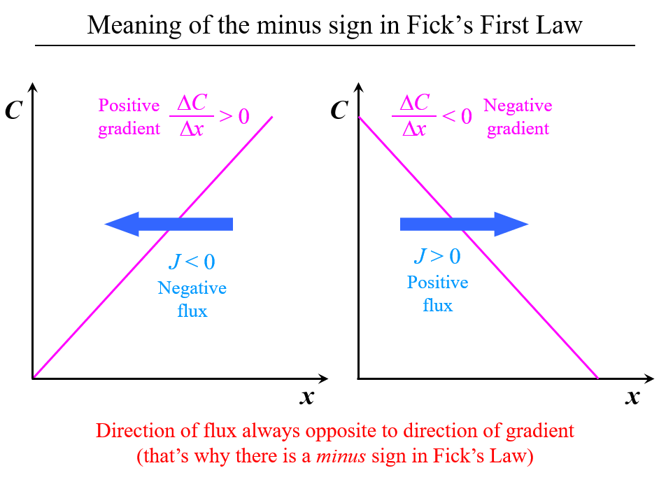 Explain the significance of the negative sign in Fick’s diffusion law.