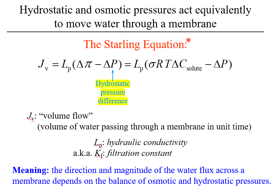 Describe the relationship between hydrostatic pressure and osmotic pressure (i.e. describe the Starling equation)