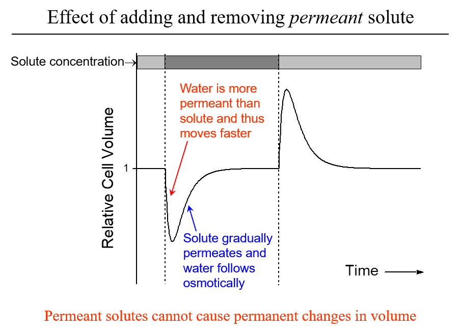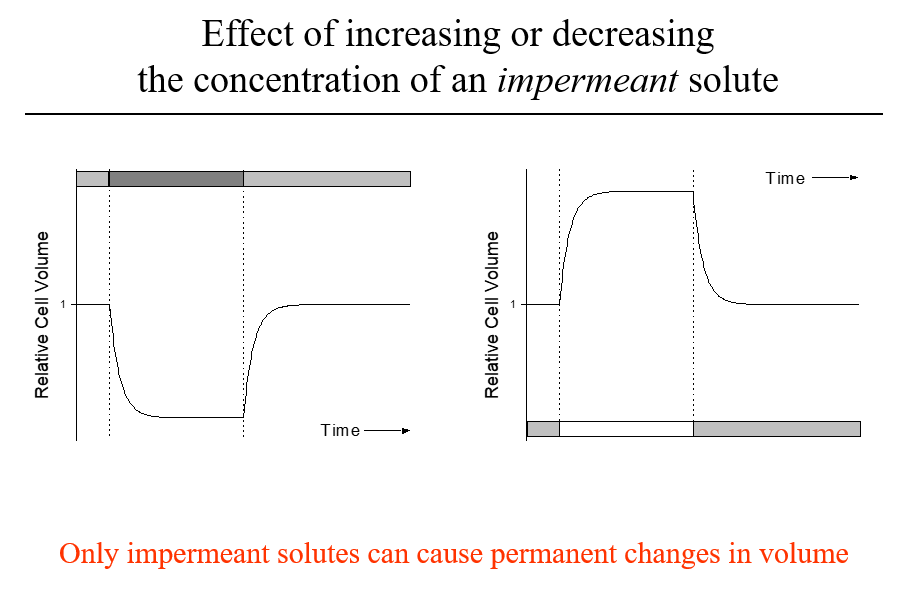 ** only an impermeant solute causes permanent changes in volume **