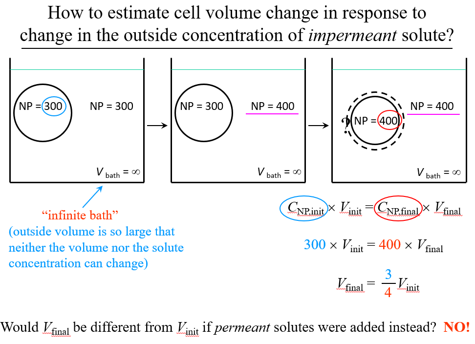 How do you estimate a cell’s volume when you change the extracellular concentration of an impermeable solute?