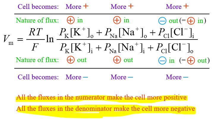 Vm = RT/F * ln Pion a[A]o + Pion b[B]o + Pion c[C]/Pion[A]i + Pionb[B]i + Pion c[C]i