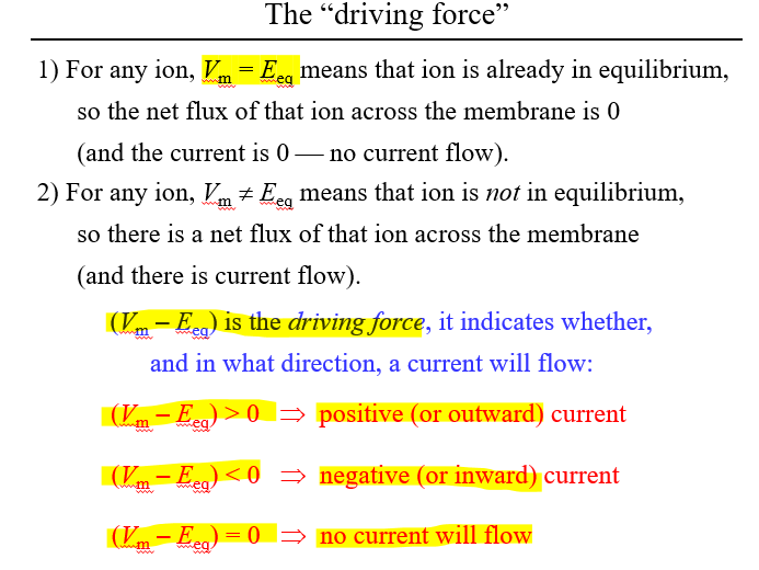 Nernst equation (Eq = RT/zF * ln [Ion]o/[Ion]i]